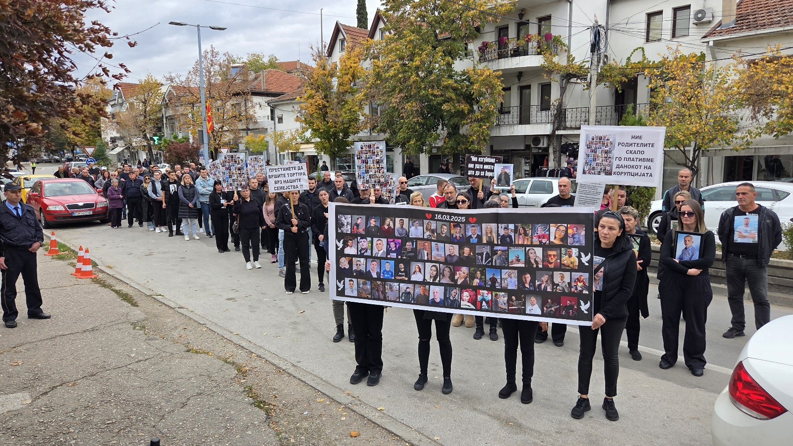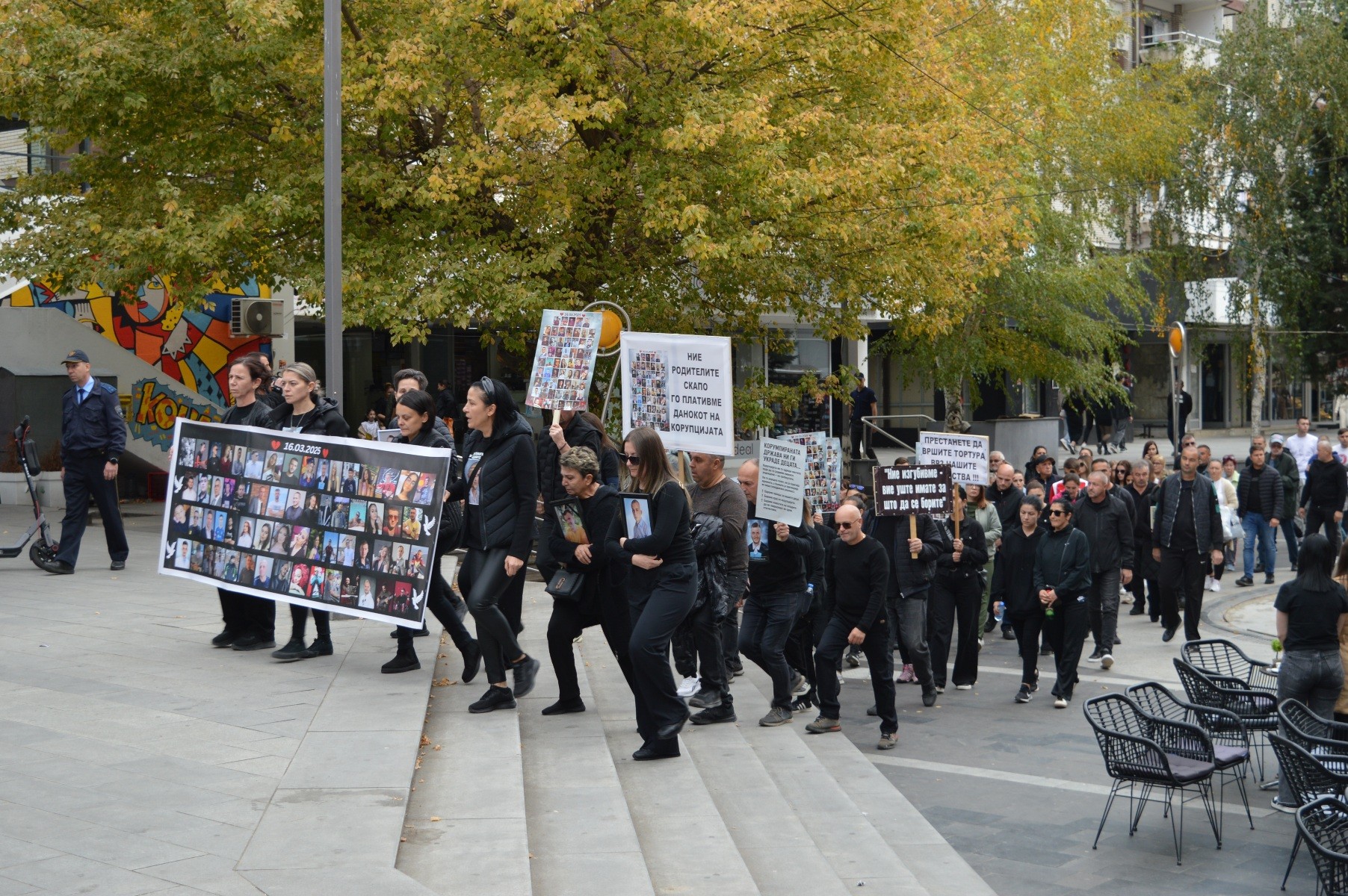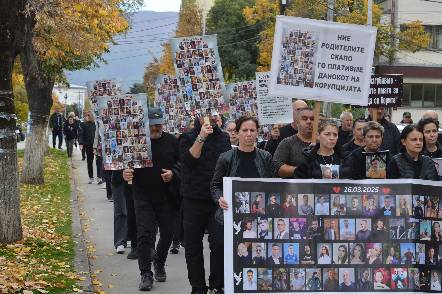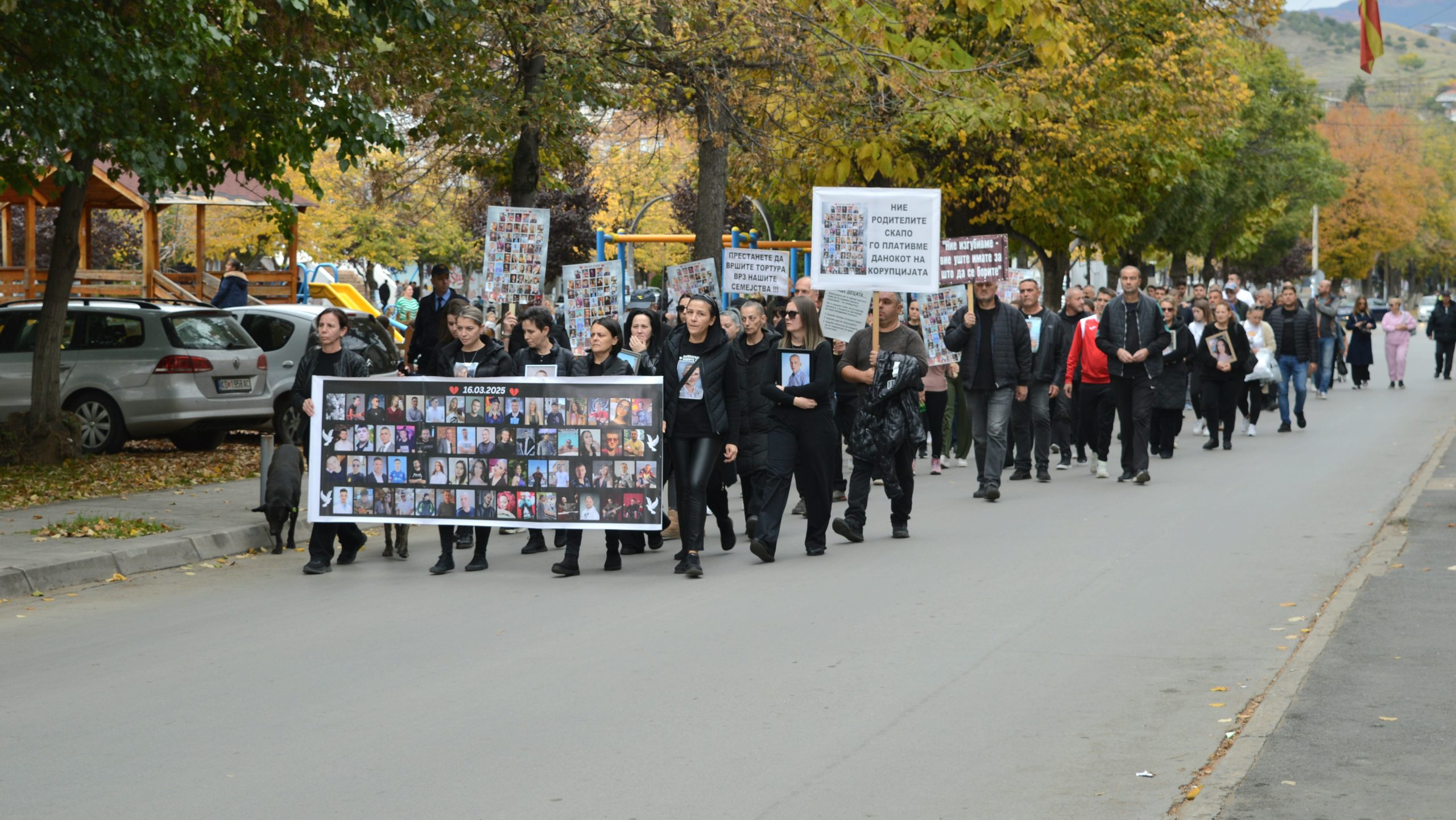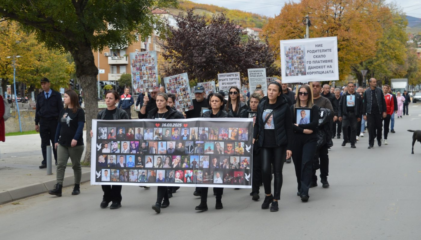 Протесниот марш продолжи кон зградата на Основниот суд и обвинителство во Кочани каде на вратата од зградата на судот беа оставени фотографии од починатите во кочанската трагедија.
