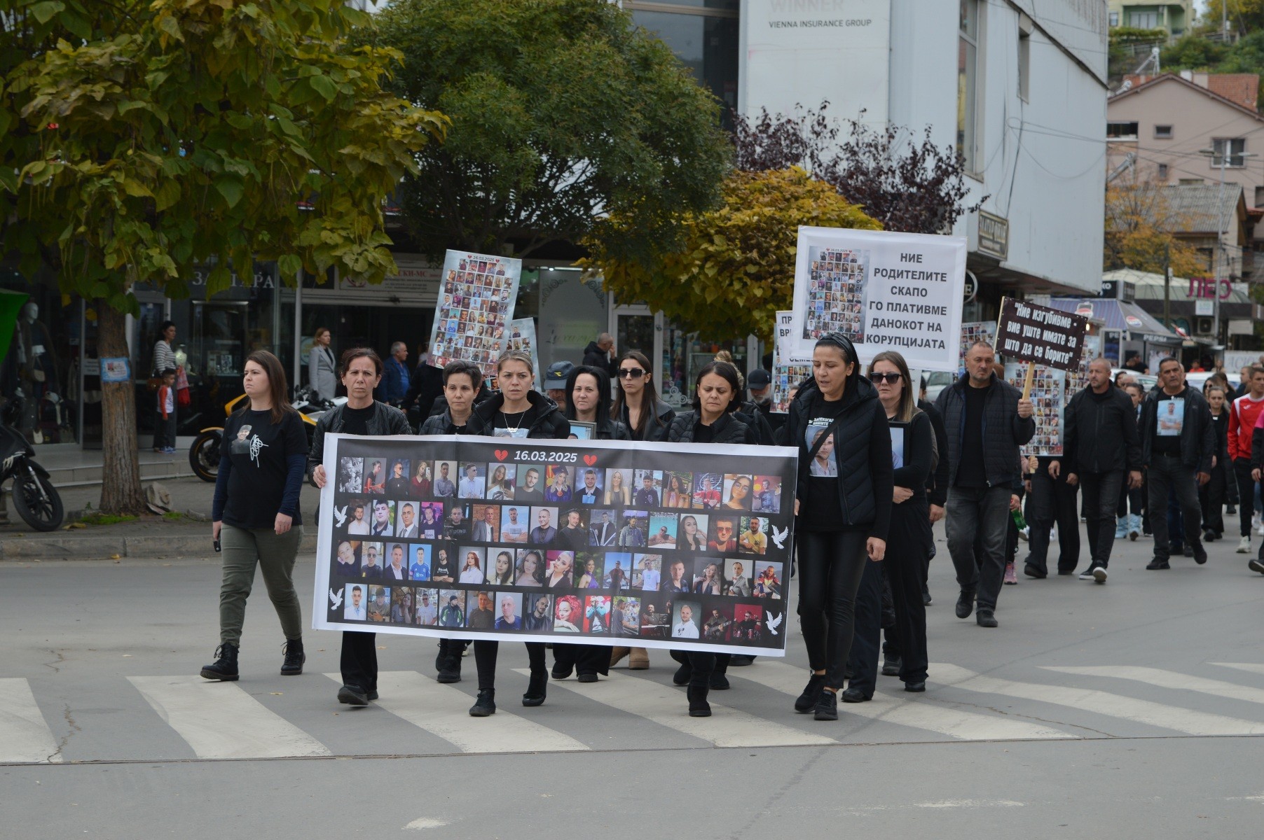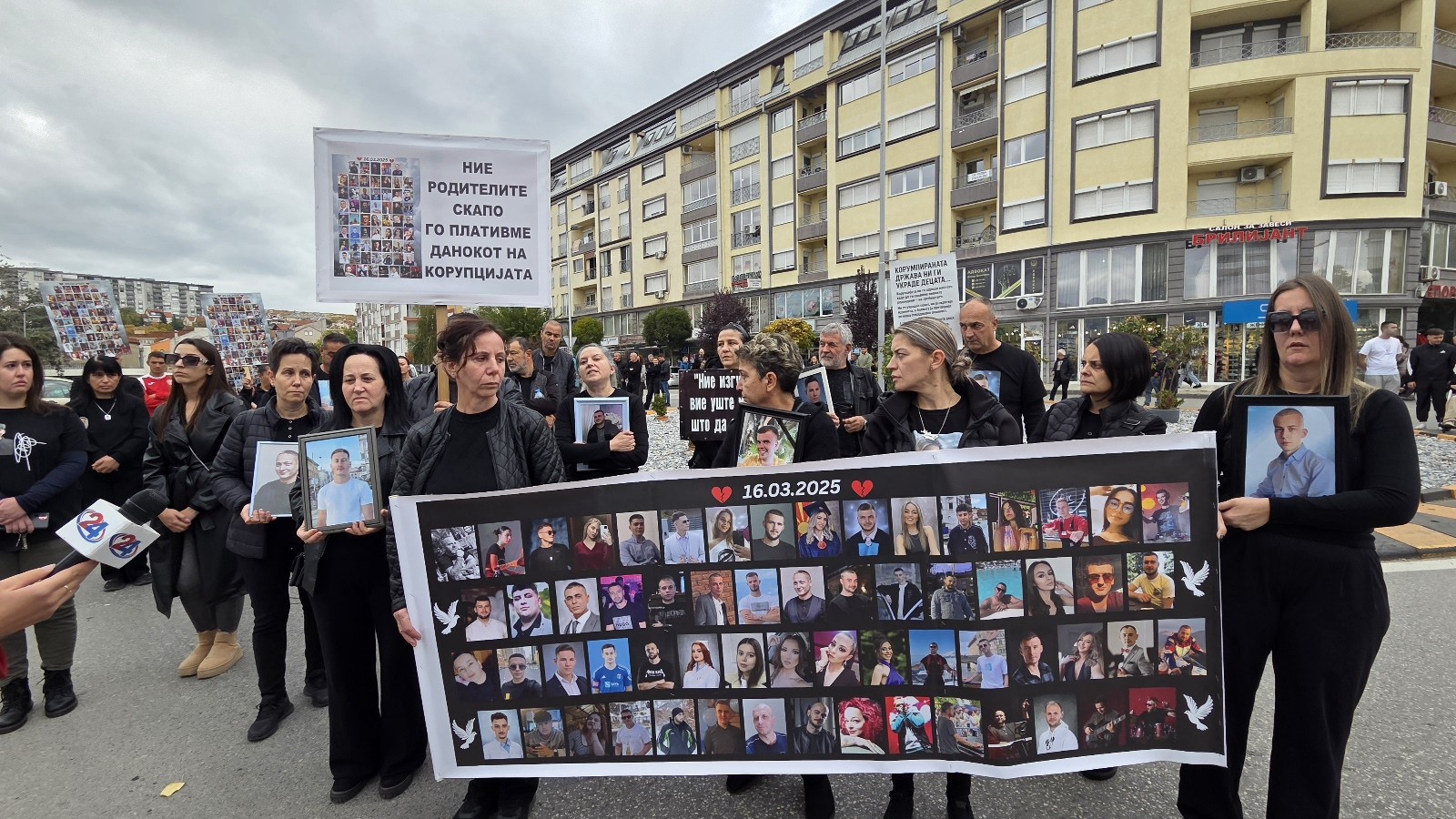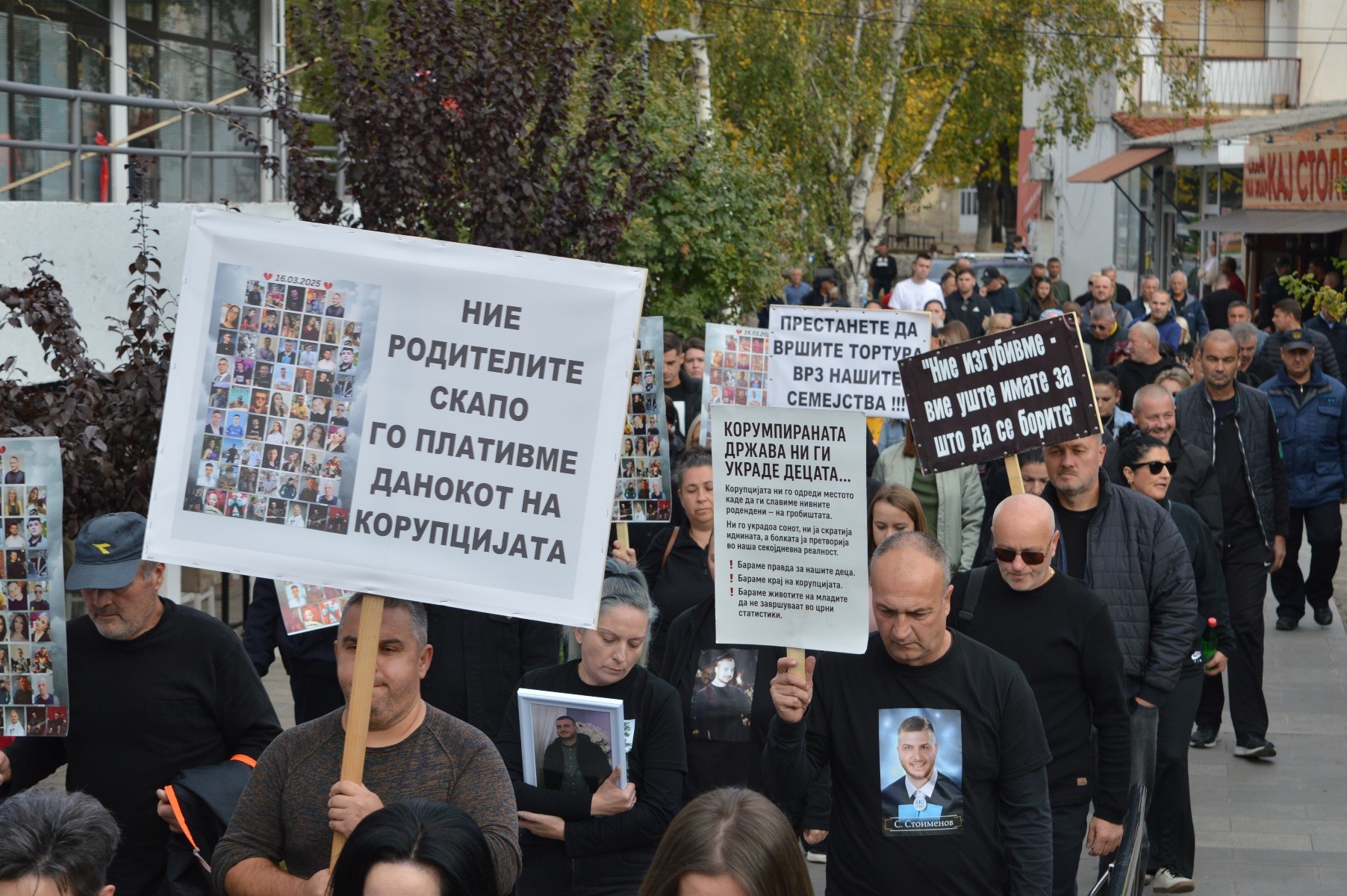 -Затоа сме тука, да кажеме на цел глас, без страв и без молчење нивната жртва не смее да биде залудна. Но дали само нашиот глас е доволен? Зарем не треба да е тоа гласот на луѓето од цела Македонија? Гласот што бара одговорност, глас од народот што не се плаши да ја погледне вистината в очи и да каже – доста беше неказнетост, доста беше корупција, доста беше молк Каде се институциите? Каде е системот што требаше да не штити? Каде беа тие што седат во своите луксузни канцеларии, во меките фотелји, платите што ги земаат од народни пари — а не видоа, не слушнаа, не почувствуваа дека пред нив се создава однадвор шупа, а внатре замок на монструм. Сите оние што требаше на време да спречат со својата тишина, со својата рамнодушност дозволите што ги издале без да проверат — тие му помогнаа на монструмот. Не со оружје, туку со молк. И тоа стана смртоносно. Како резултат на вашите пресметки, вашата борба за власт, на вашите подавања на круната те на едните те на другите— не видовте, не слушнавте, не почувствувавте дека пред вас се издига штала, а не замок на монструмот. Монструм свиреп, што единствено ги сака парите. Монструм што ги гледа луѓето како бројки, а не како срца. Вашите политички игри, поткупливоста, алчноста, неодговорноста и личните интереси ја создале почвата на која тој израсна. И затоа денес никој од вас нема право да молчи. Вашето “не видов” и„не знаев“ се рамни на „дозволив“ и „помогнав” Денес не зборуваме само за ПРАВДА — зборуваме за совест. За сите оние што ја продадоа душата за фотелја, за пари, за лажна моќ. богатство, ја изгубија човечноста по пат. Трчајќи по власт, функција. Ни се гади од тој свет на купени совести, продадени срца и од таа желба за богатство и власт што ги јаде луѓето како болест, рече Манта Стоименова, мајка на починатиот Спиро.